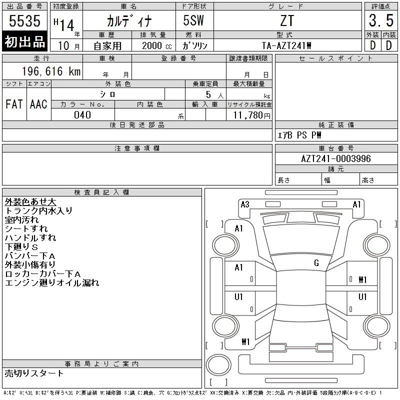 TOYOTA CALDINA - лот 5535