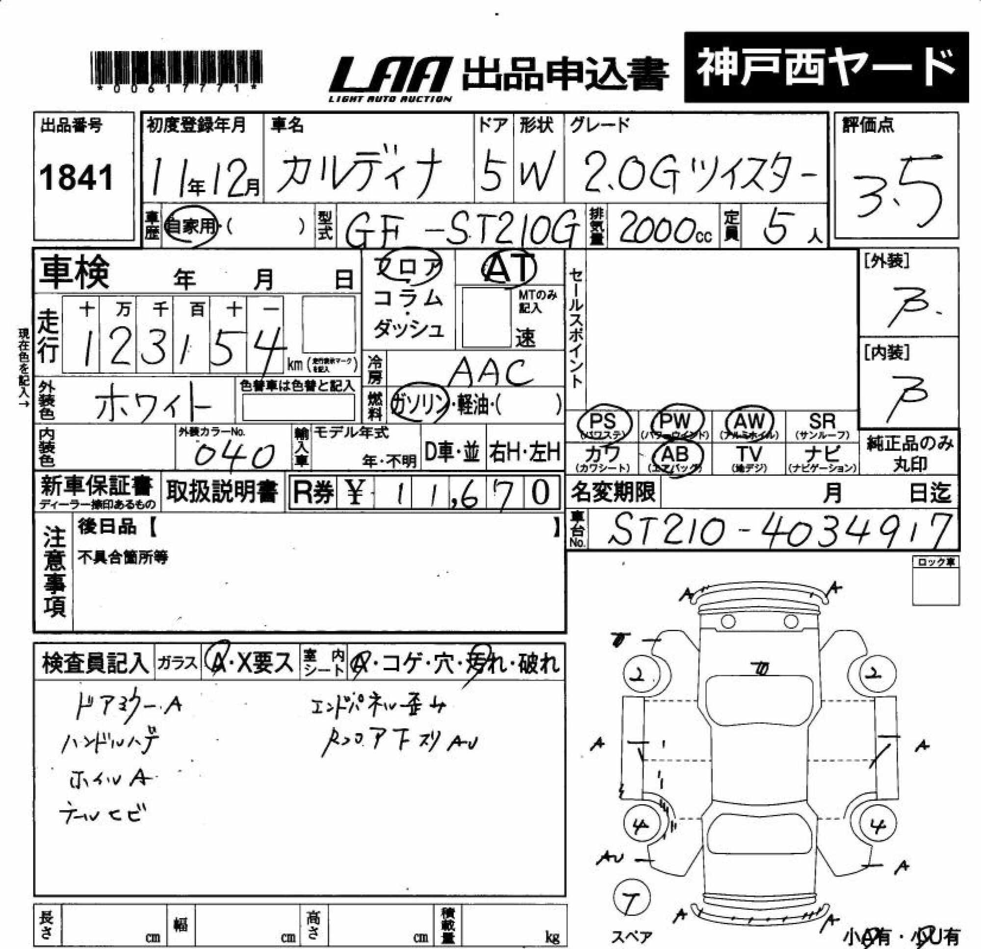 TOYOTA CALDINA - лот 1841