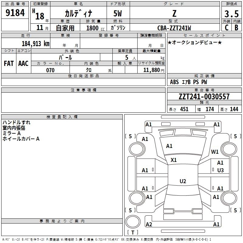 TOYOTA CALDINA - лот 9184