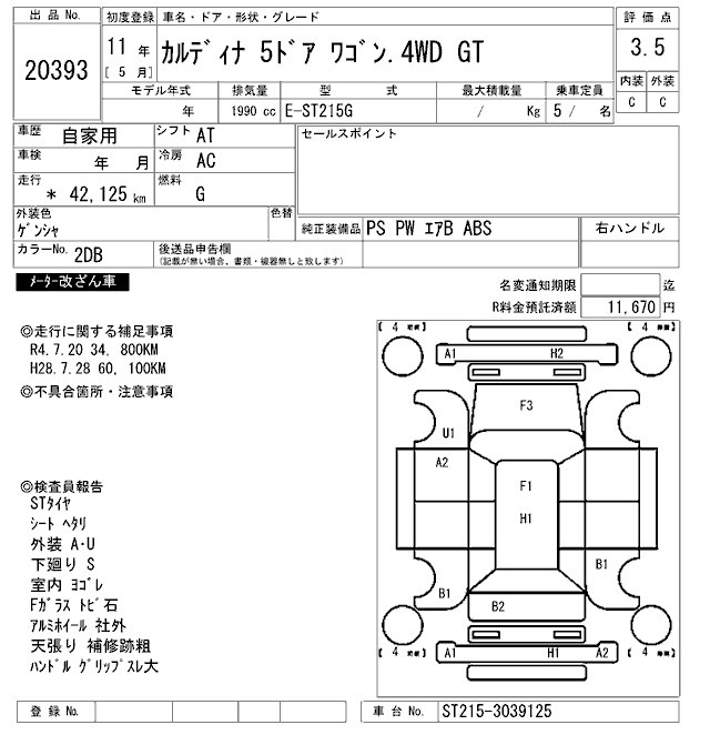 TOYOTA CALDINA - лот 20393