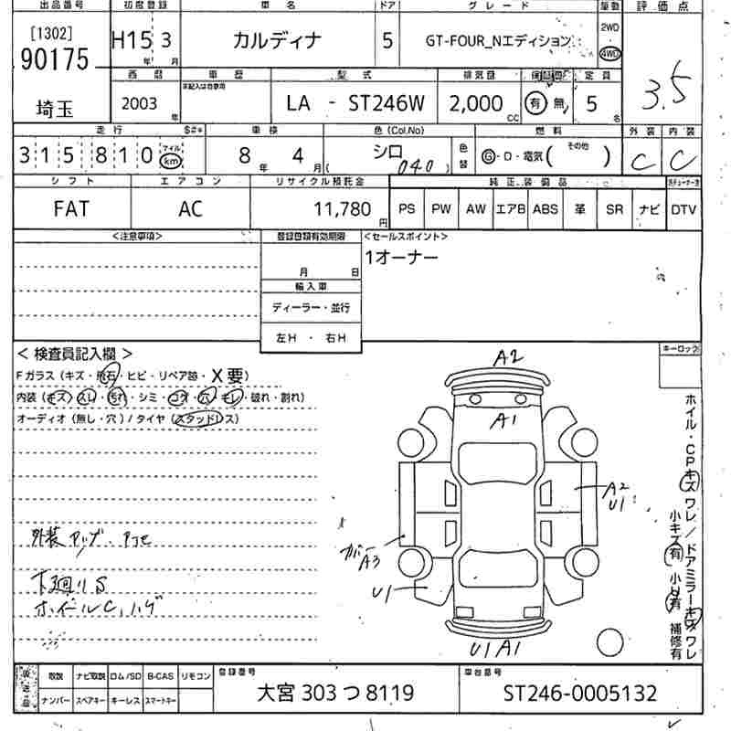 TOYOTA CALDINA - лот 90175