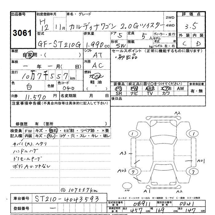 TOYOTA CALDINA - лот 3061