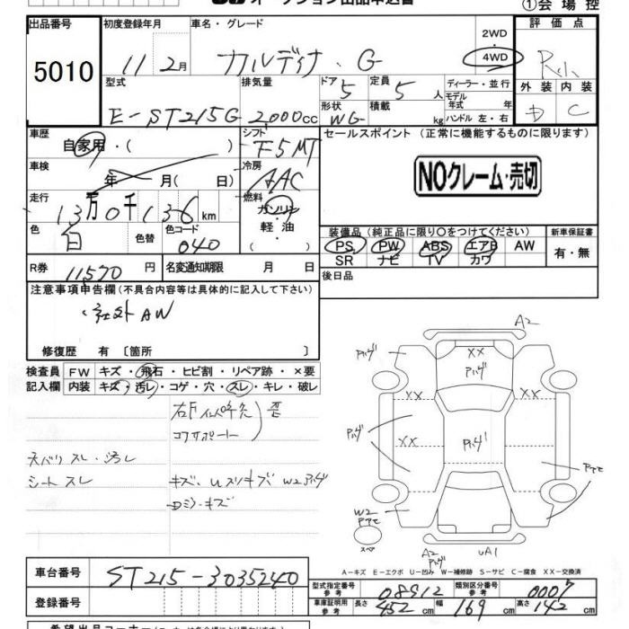 TOYOTA CALDINA - лот 5010