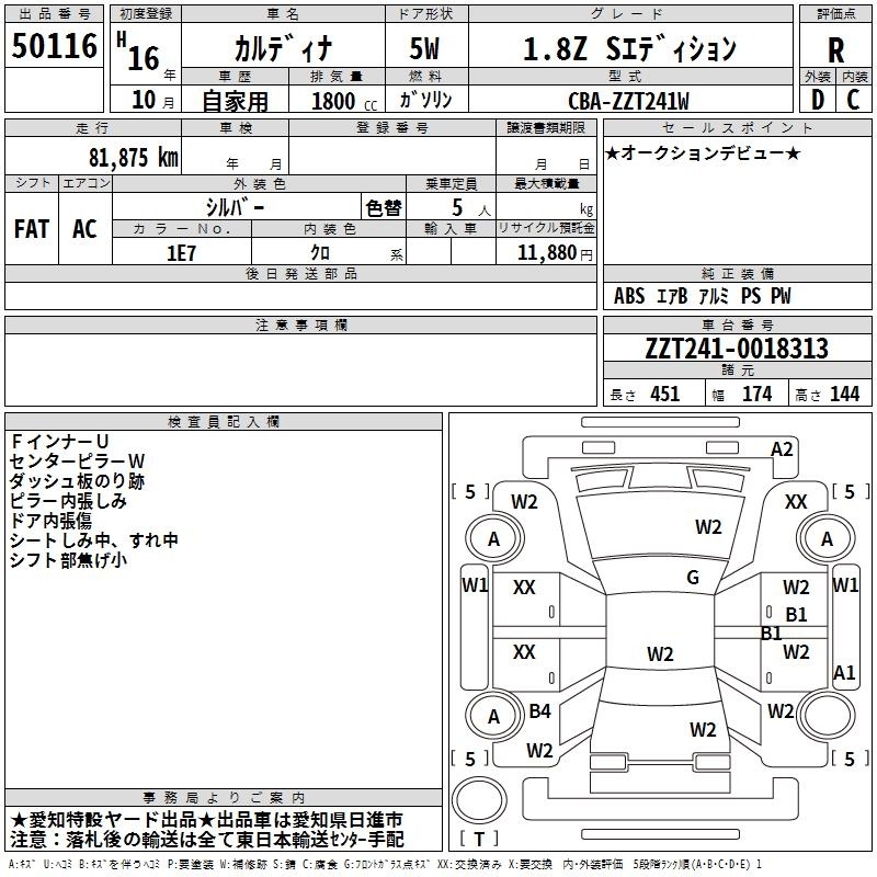 TOYOTA CALDINA - лот 50116