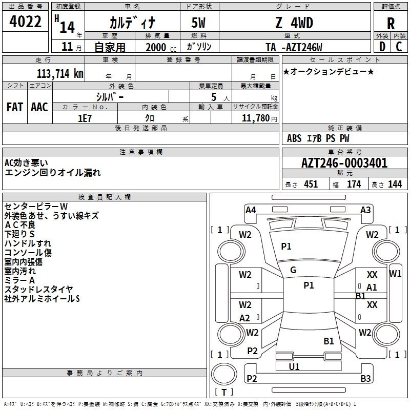 TOYOTA CALDINA - лот 4022