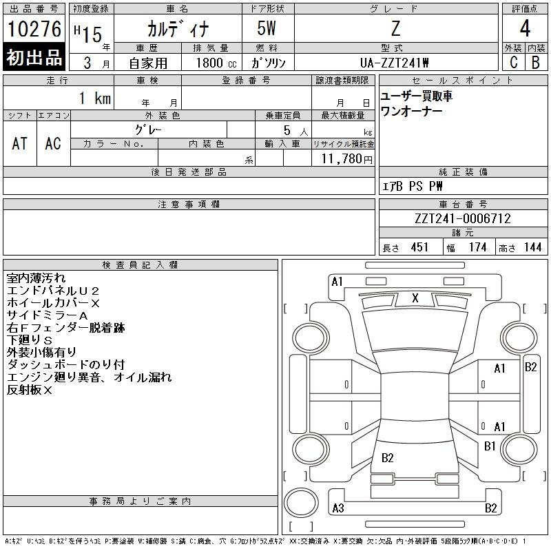 TOYOTA CALDINA - лот 10276