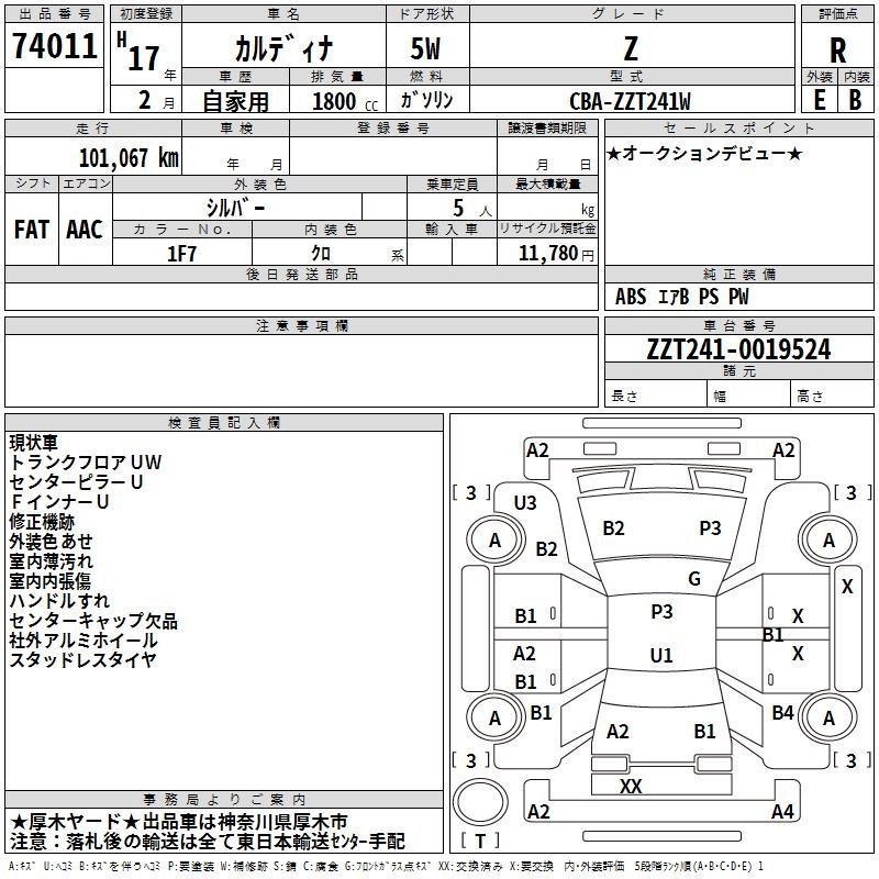 TOYOTA CALDINA - лот 74011