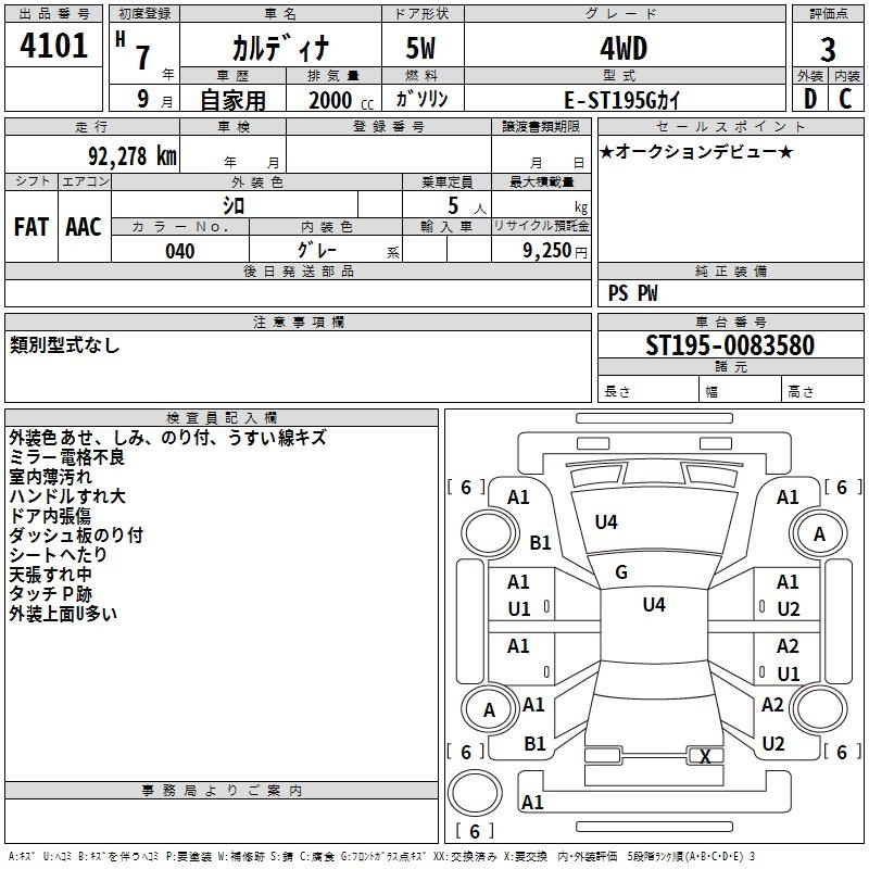 TOYOTA CALDINA - лот 4101