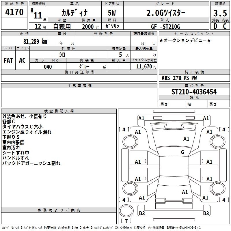 TOYOTA CALDINA - лот 4170
