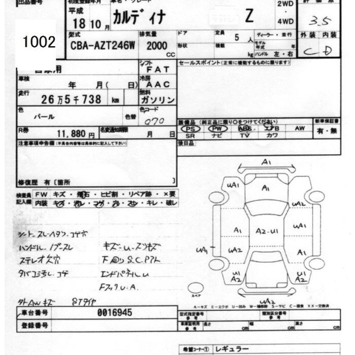 TOYOTA CALDINA - лот 1002