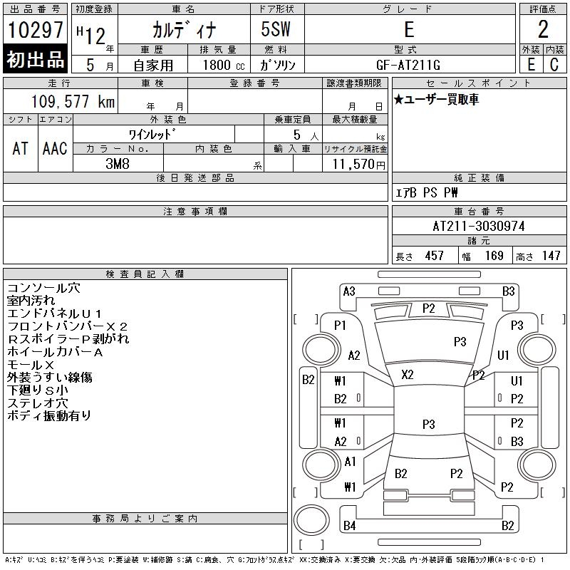 TOYOTA CALDINA E - лот 10297