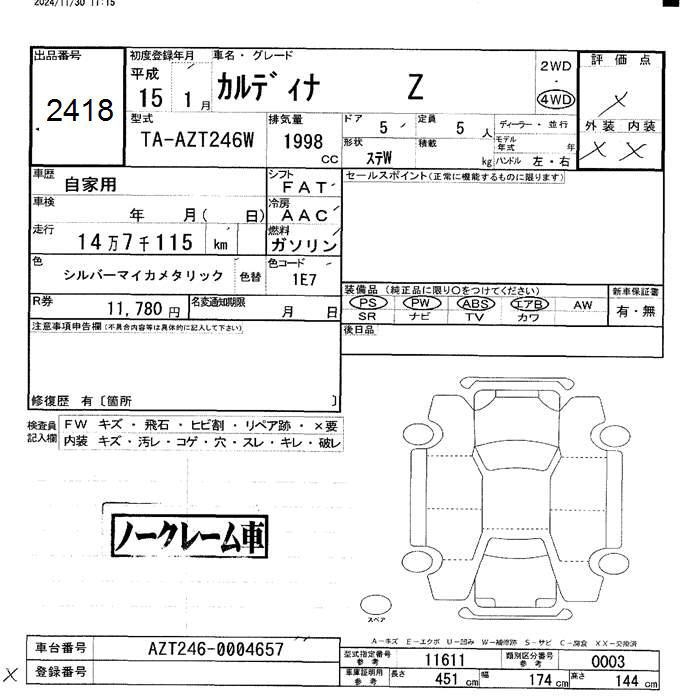 TOYOTA CALDINA - лот 2418
