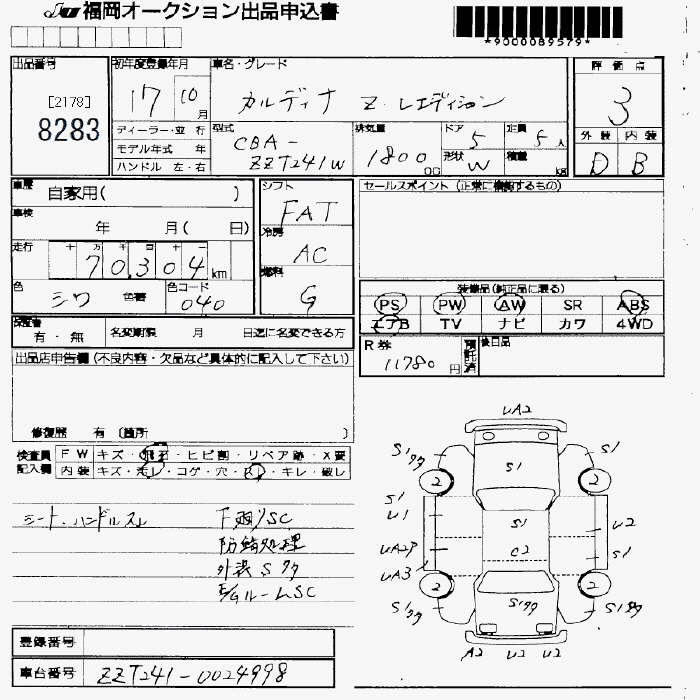 TOYOTA CALDINA - лот 8283