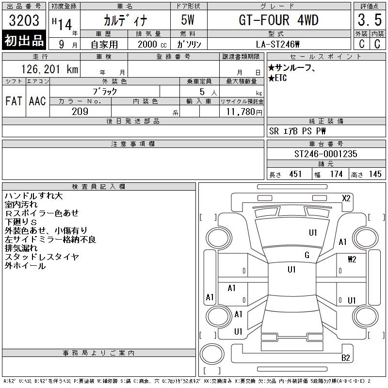 TOYOTA CALDINA - лот 3203