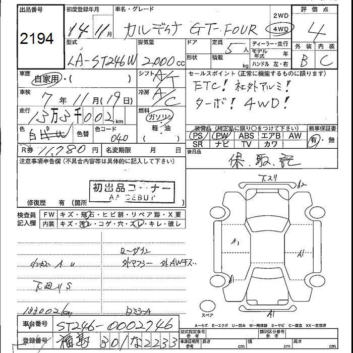TOYOTA CALDINA - лот 2194