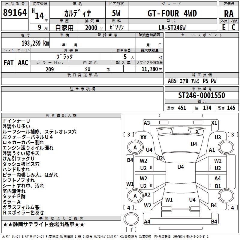 TOYOTA CALDINA - лот 89164