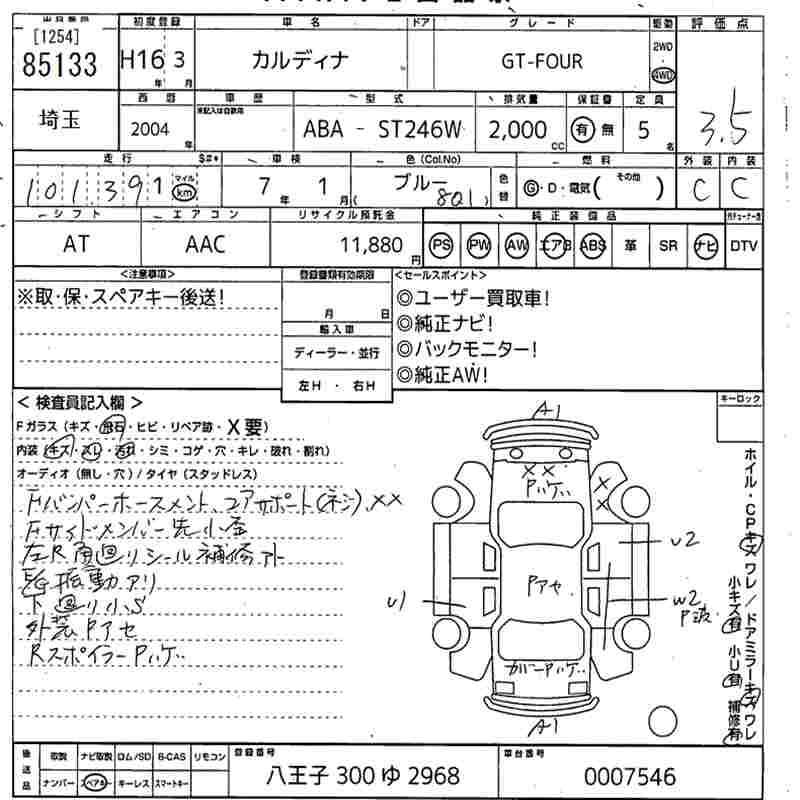 TOYOTA CALDINA - лот 85133