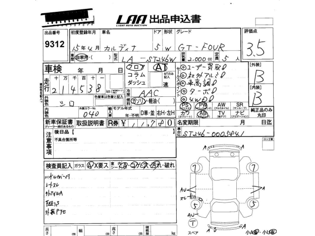 TOYOTA CALDINA - лот 9312