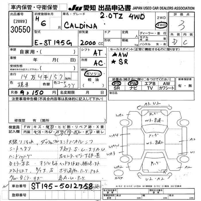 TOYOTA CALDINA - лот 30550