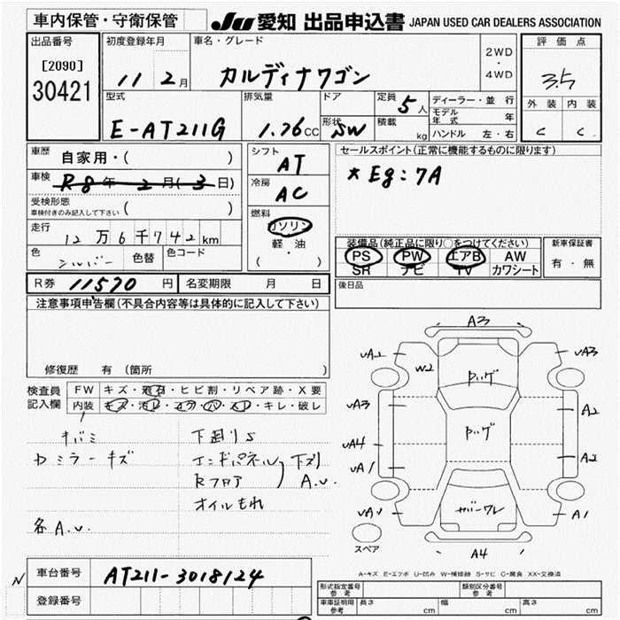 TOYOTA CALDINA - лот 30421