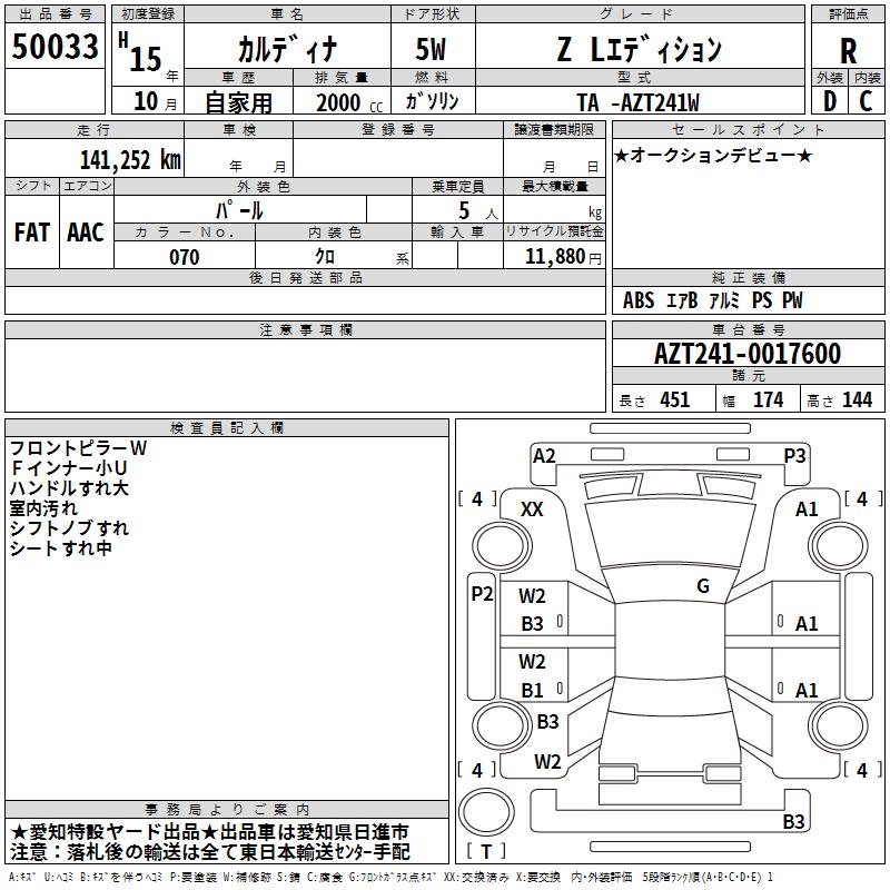 TOYOTA CALDINA - лот 50033