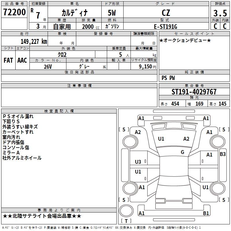 TOYOTA CALDINA - лот 72200
