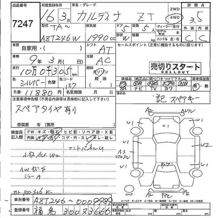 TOYOTA CALDINA - лот 7247