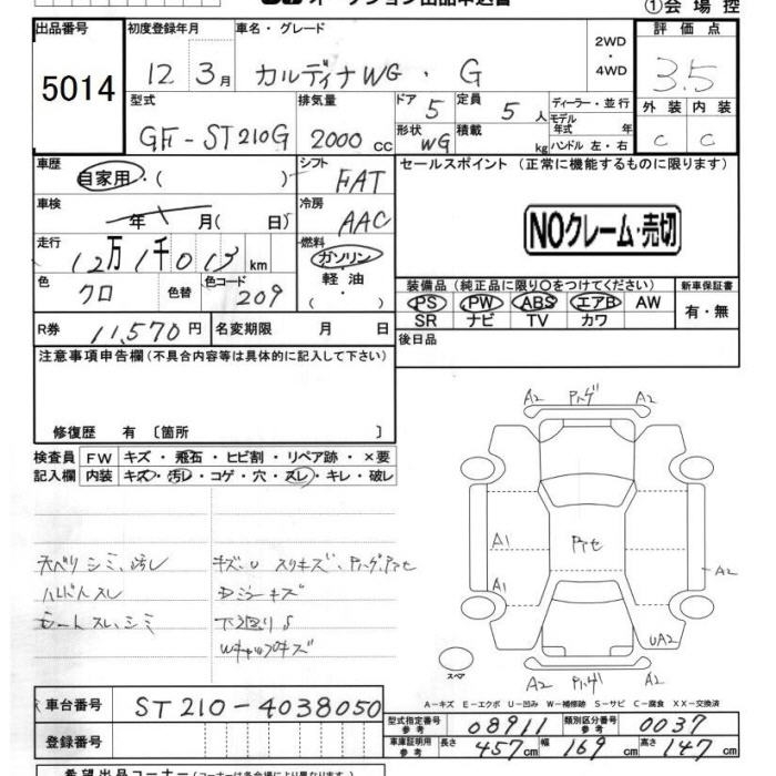 TOYOTA CALDINA G - лот 5014