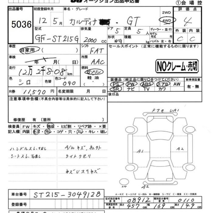 TOYOTA CALDINA 4WD GT - лот 5036