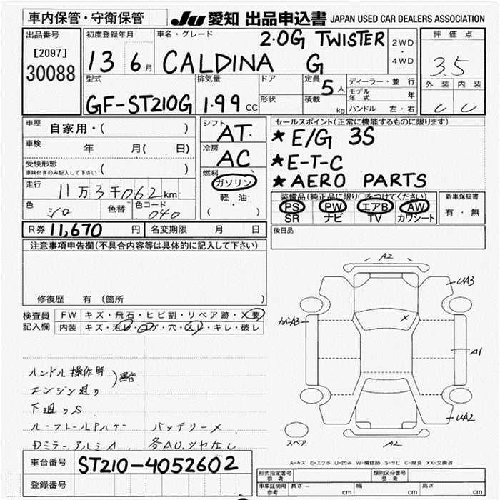 TOYOTA CALDINA G TWISTOR - лот 30088