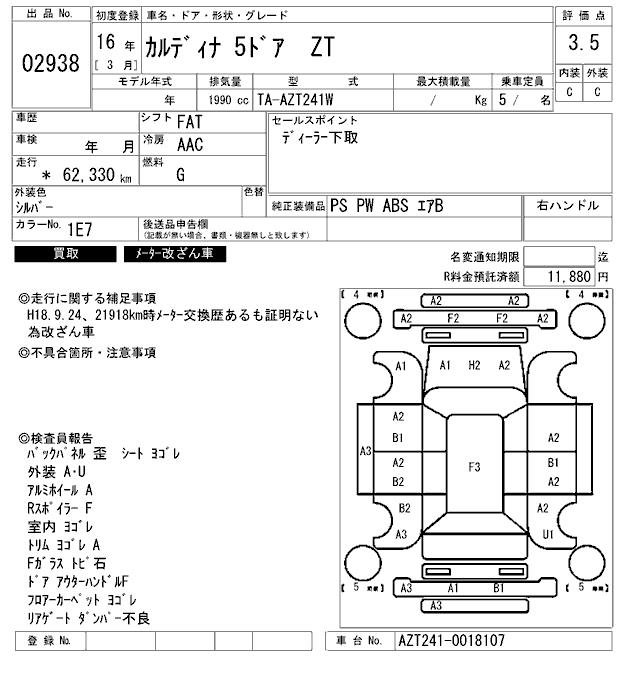 TOYOTA CALDINA ZT - лот 2938