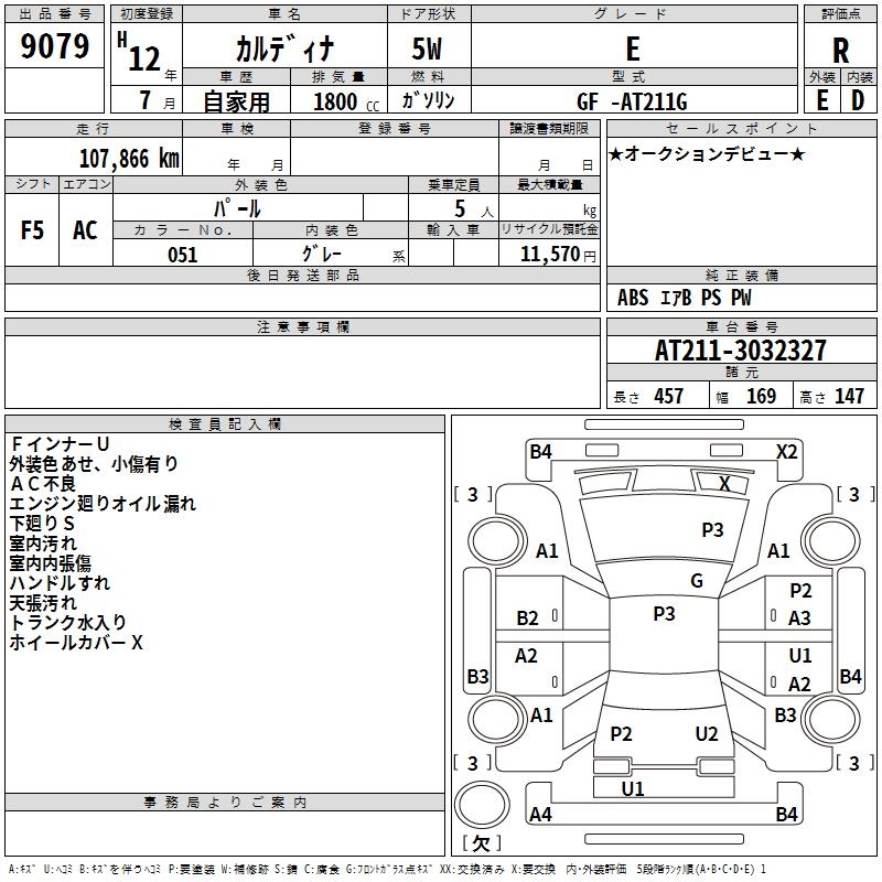 TOYOTA CALDINA E - лот 9079