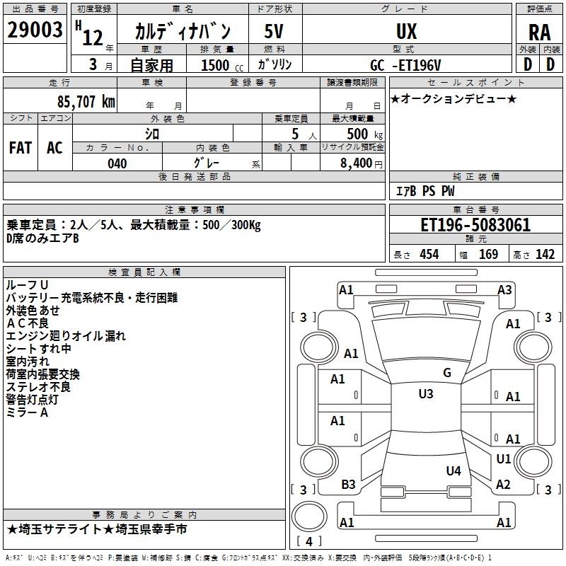 TOYOTA CALDINA VAN - лот 29003