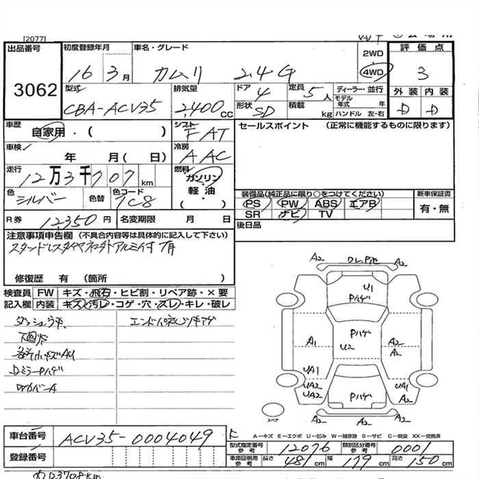 TOYOTA CAMRY 4WD 2.4G - лот 3062