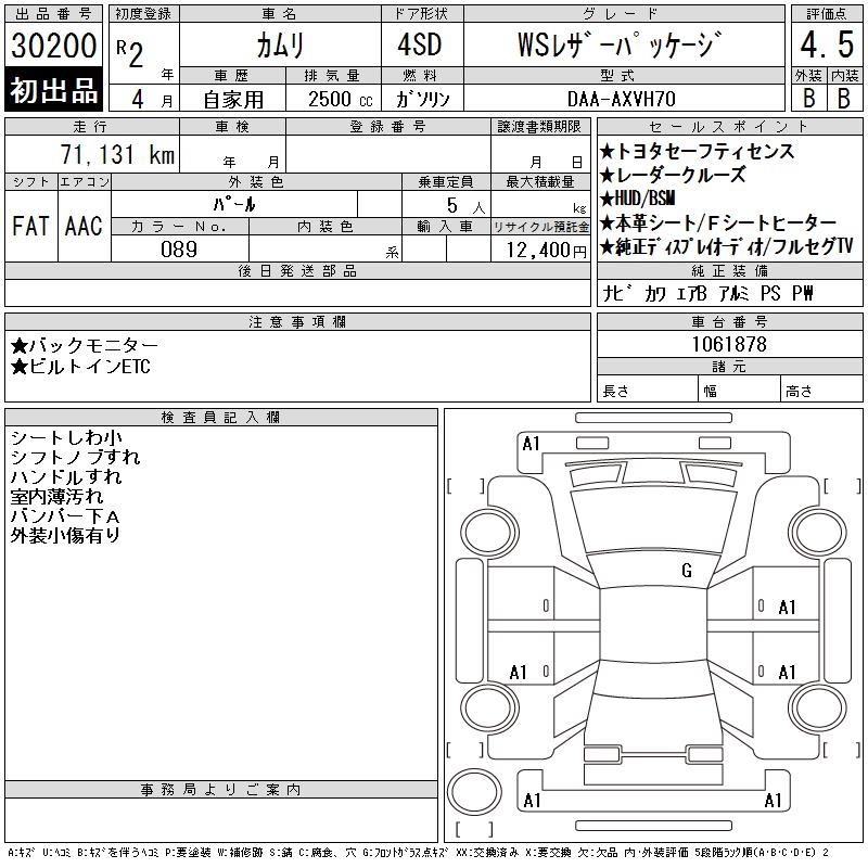 TOYOTA CAMRY WS LEATHER PACKAGE - лот 30200