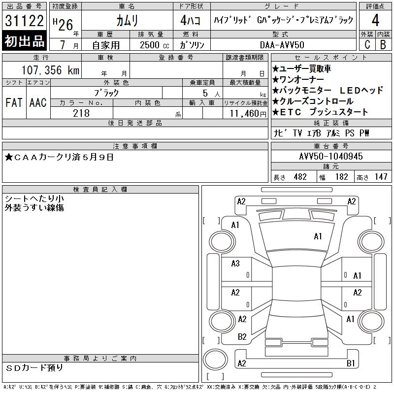 TOYOTA CAMRY HV G PACK * PREMIUM BLACK - лот 31122