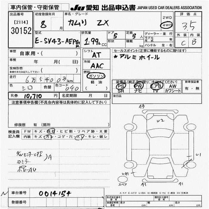 TOYOTA CAMRY ZX 4WD - лот 30152