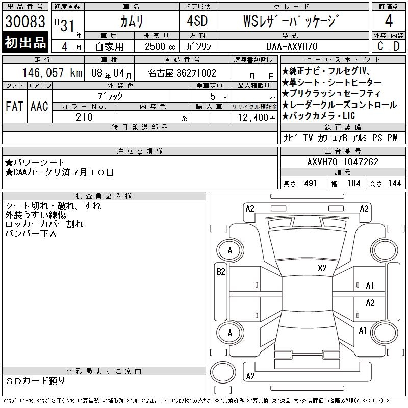 TOYOTA CAMRY WS LEATHER PACKAGE - лот 30083