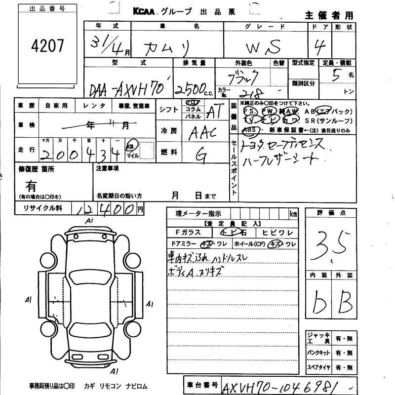 TOYOTA CAMRY WS - лот 4207
