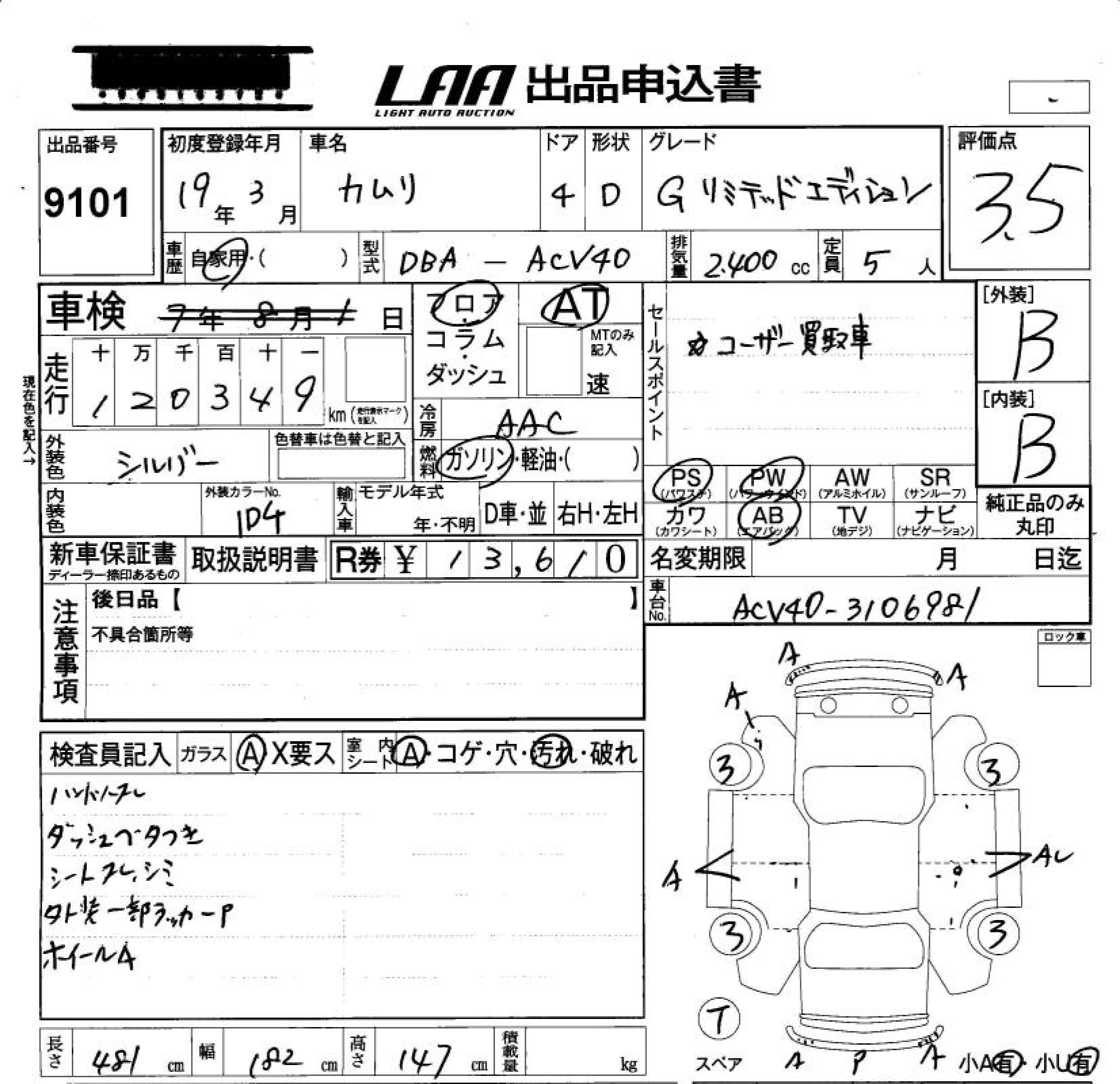 TOYOTA CAMRY G LIMITED EDITION - лот 9101