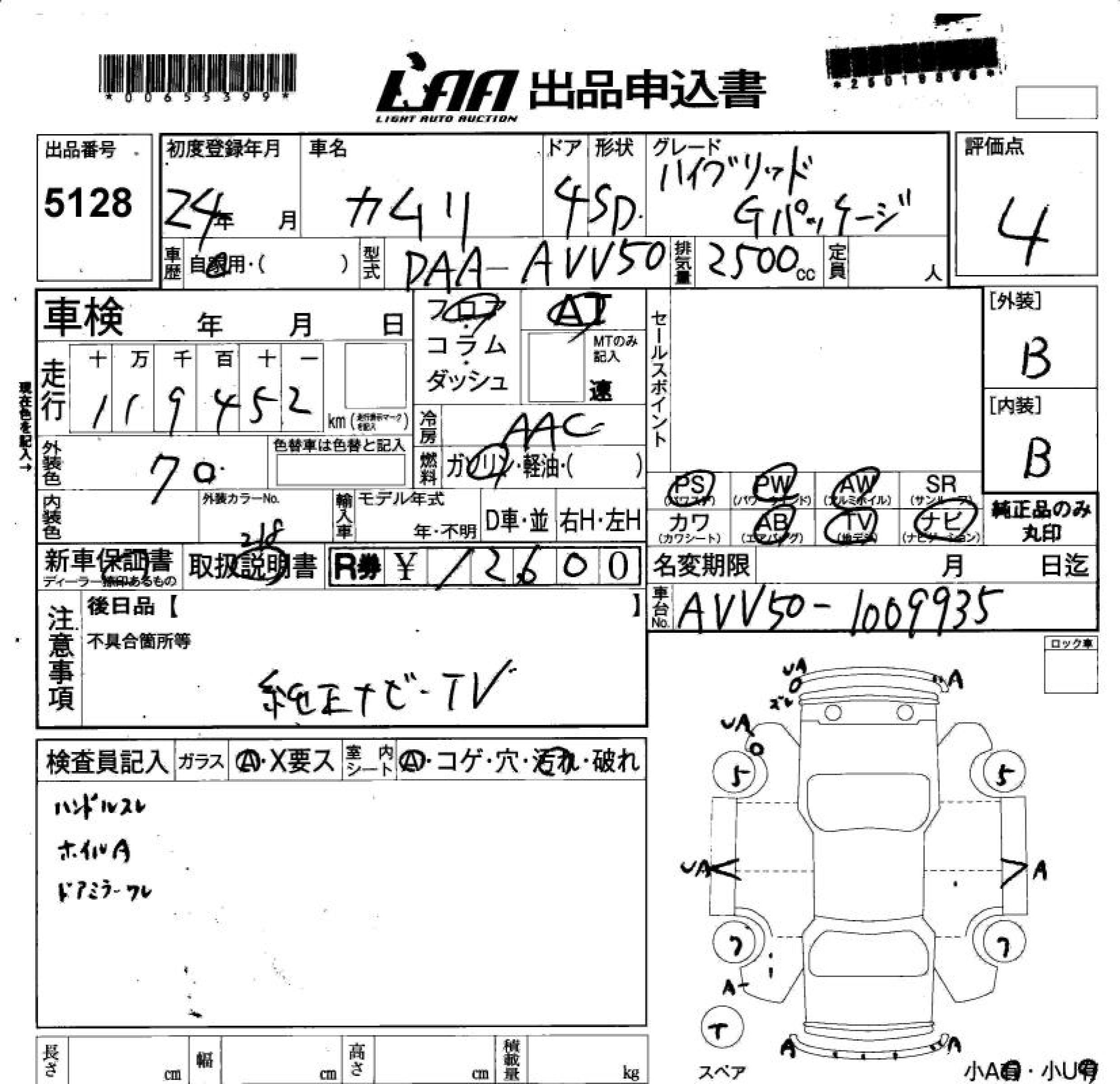 TOYOTA CAMRY HYBRID G PACKAGE - лот 5128