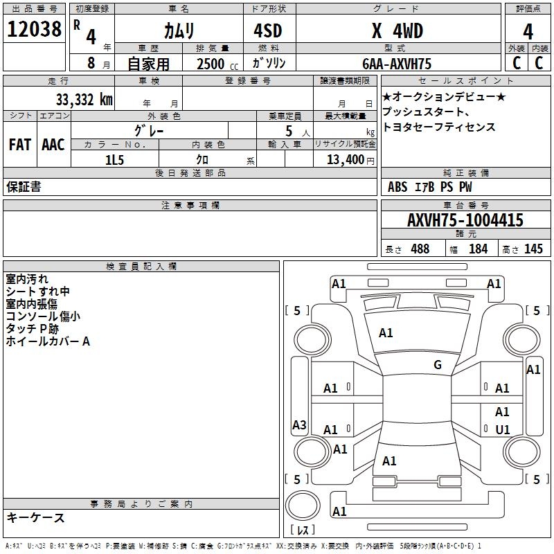 TOYOTA CAMRY X 4WD - лот 12038