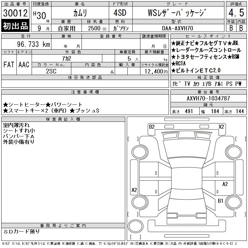 TOYOTA CAMRY WS LEATHER PACKAGE - лот 30012