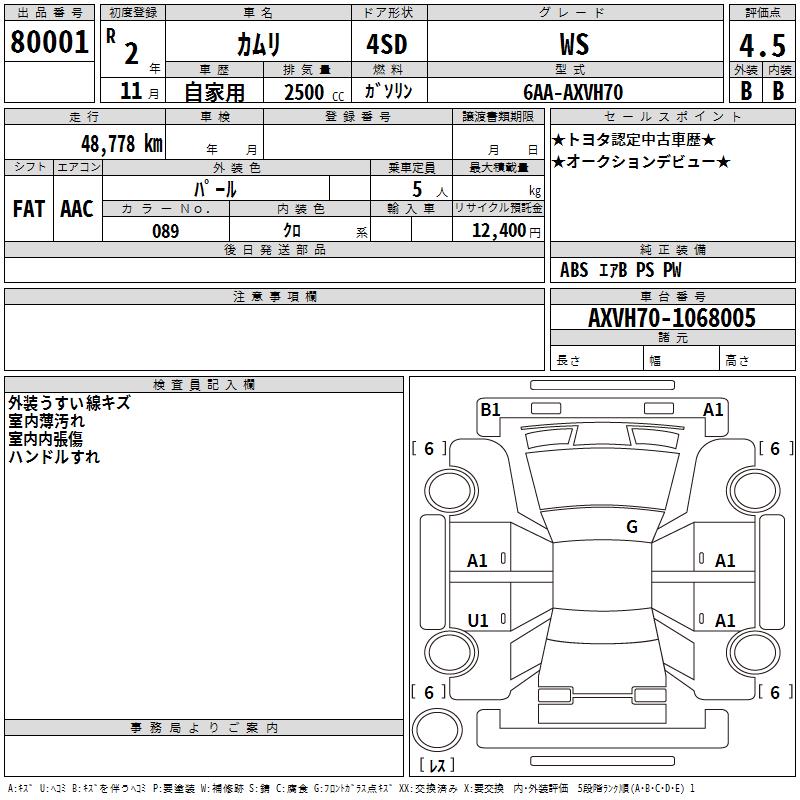 TOYOTA CAMRY WS - лот 80001