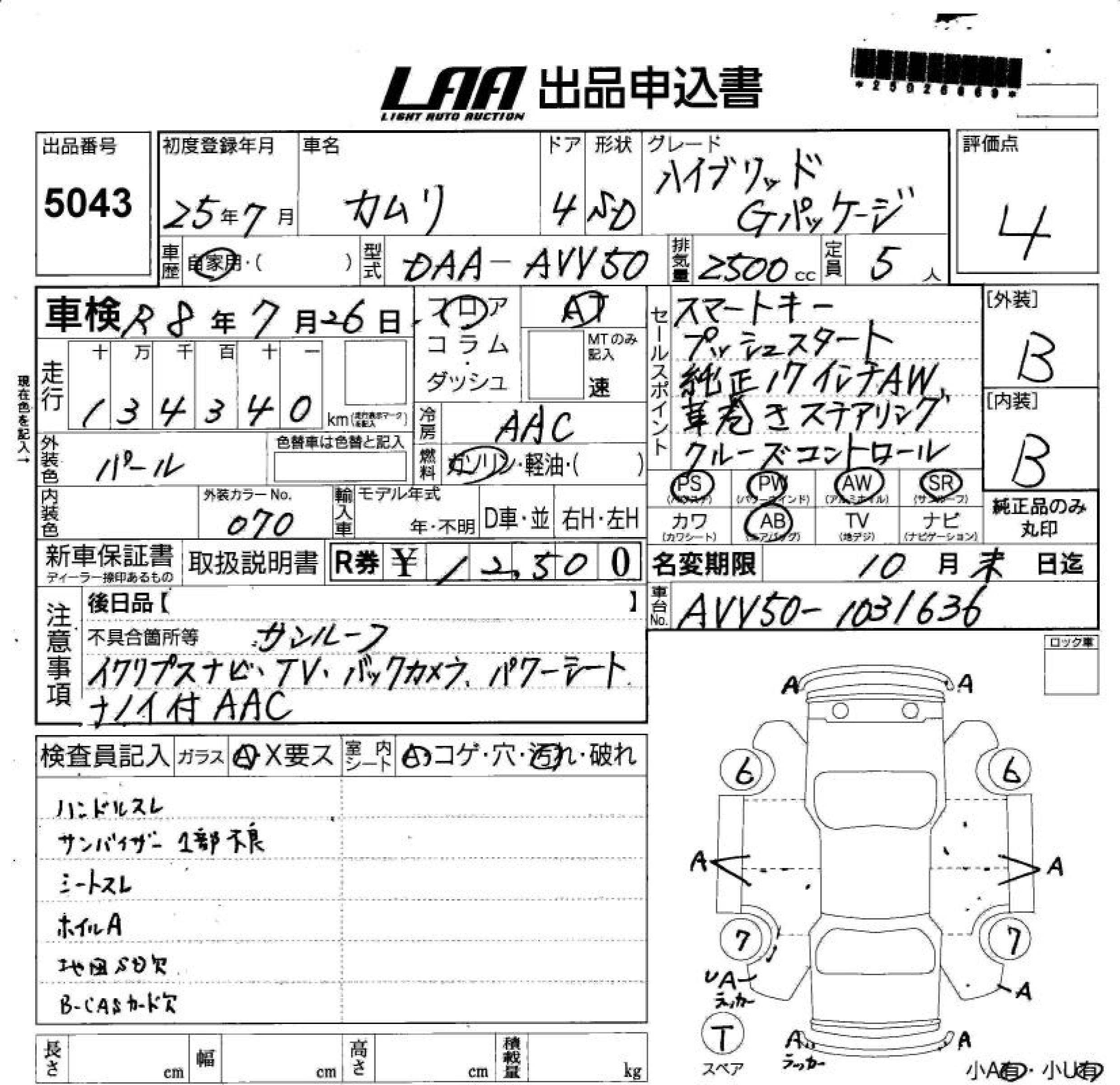TOYOTA CAMRY HYBRID G PACKAGE - лот 5043