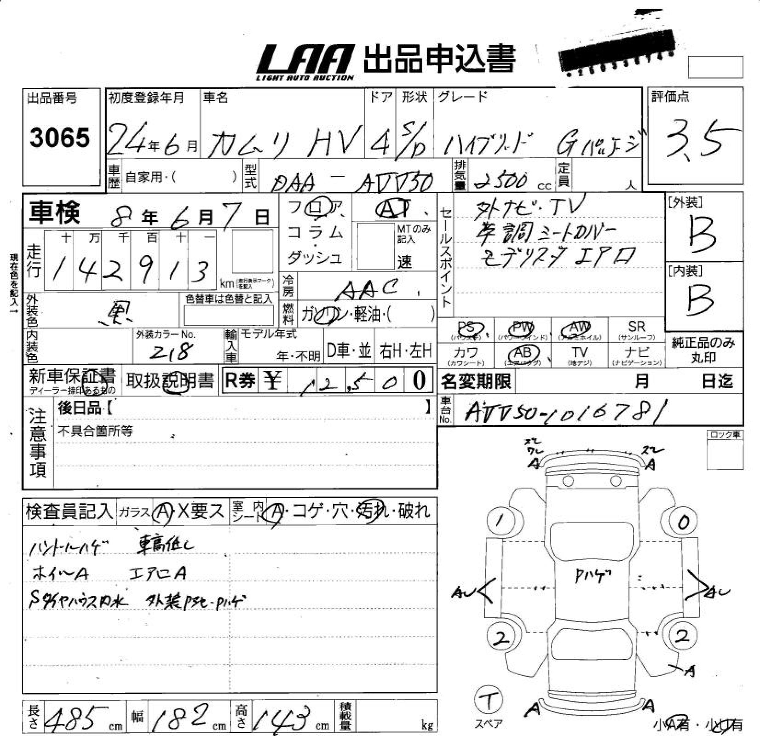 TOYOTA CAMRY HYBRID G PACKAGE - лот 3065