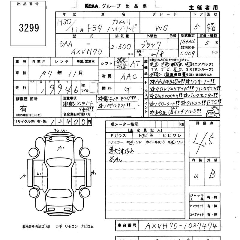 TOYOTA CAMRY WS - лот 3299