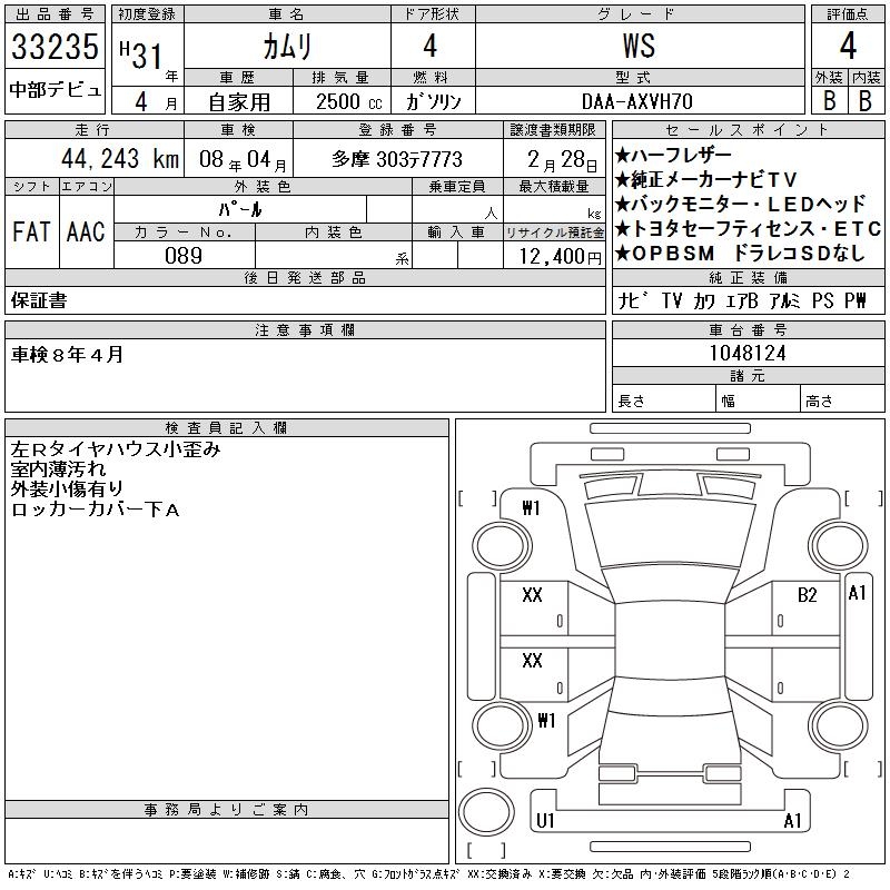 TOYOTA CAMRY WS - лот 33235