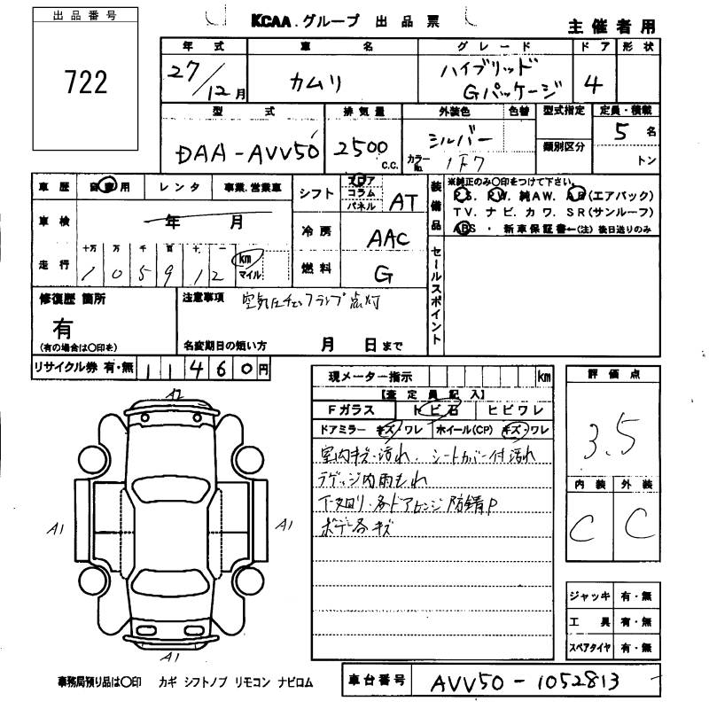 TOYOTA CAMRY HYBRID G PACKAGE - лот 722