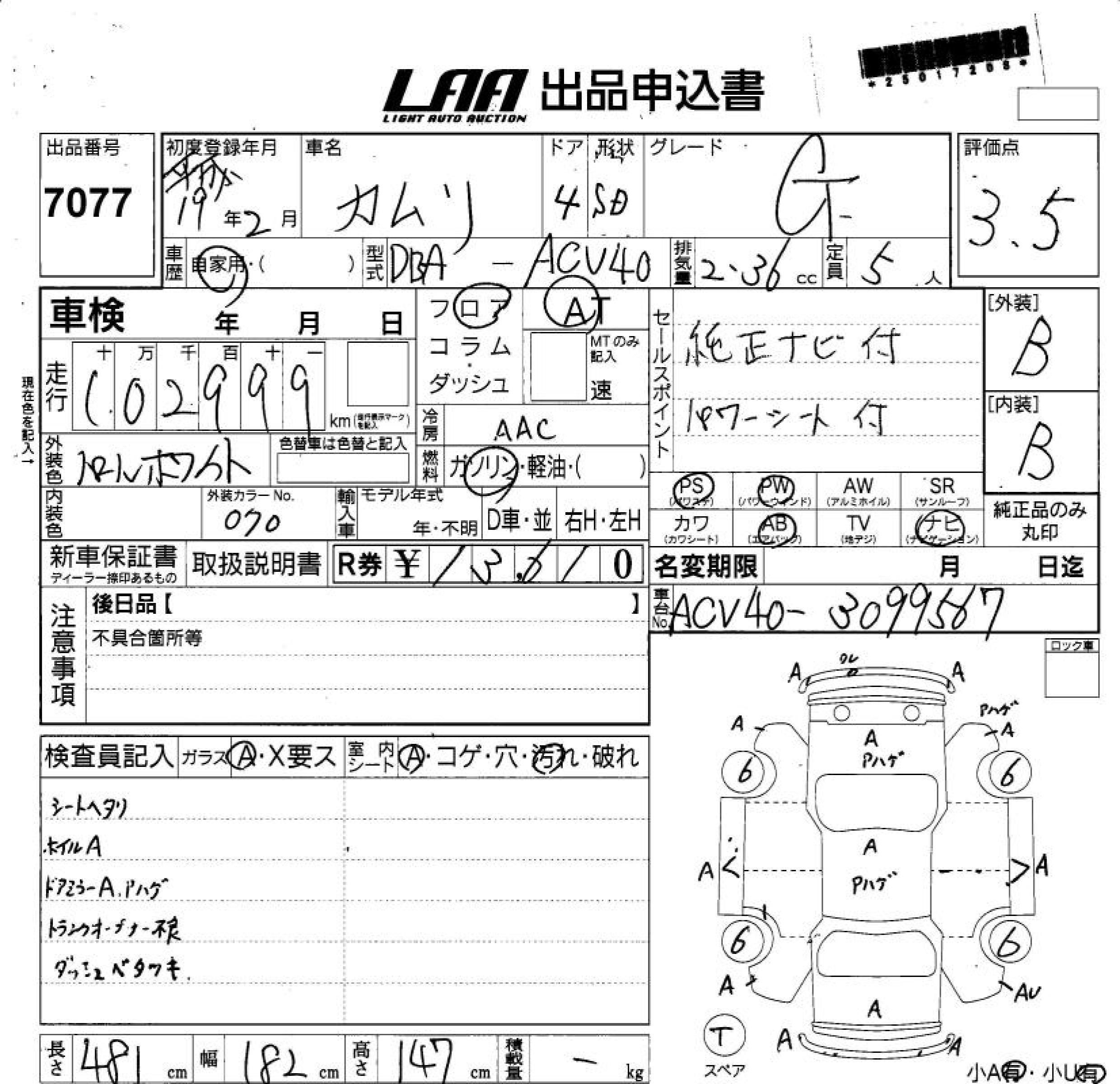 TOYOTA CAMRY G - лот 7077